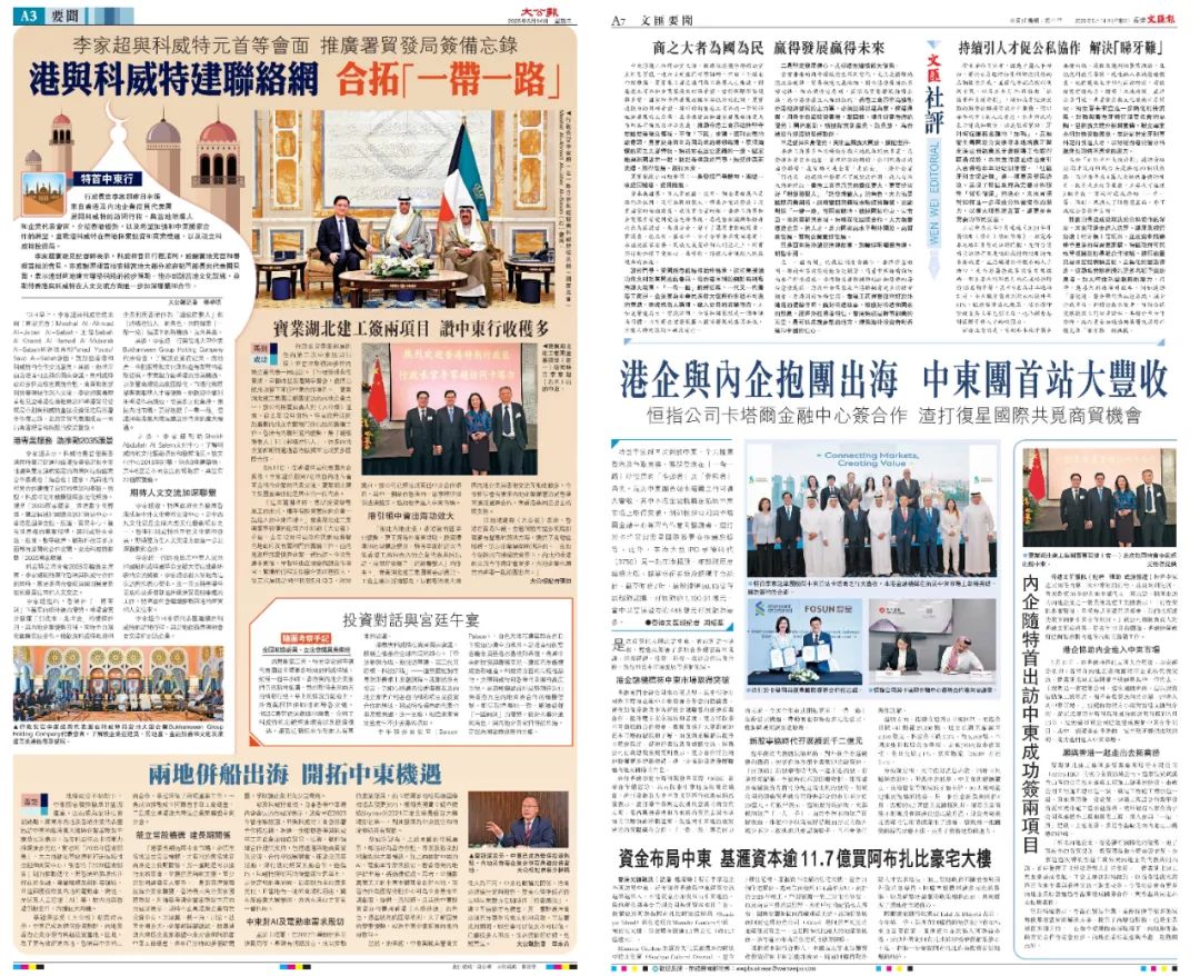 訪問(wèn)期間,李家超與兩國(guó)國(guó)家元首及政要會(huì)面,就相關(guān)合作進(jìn)行深入交流;代表團(tuán)還考察了卡塔爾盧賽爾智慧新城、科威特自由貿(mào)易區(qū)等重點(diǎn)項(xiàng)目,與多家金融機(jī)構(gòu)對(duì)接,與兩地政商界領(lǐng)袖舉行多場(chǎng)圓桌會(huì)議。